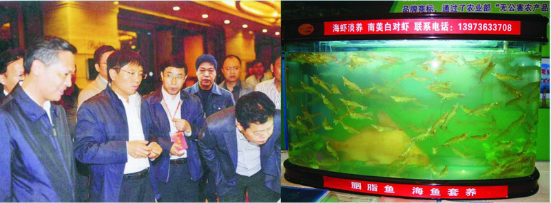 9 合作社概貌—省委副书记孙金龙(前左二)、副省长张硕辅(前左一)现场观摩福民水产养殖合作社的南美白对虾