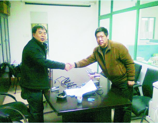 10 合作社概貌—中山大学海洋学院院长何建国教授(左)与合作社理事长罗德军签订合作合同后握手留影